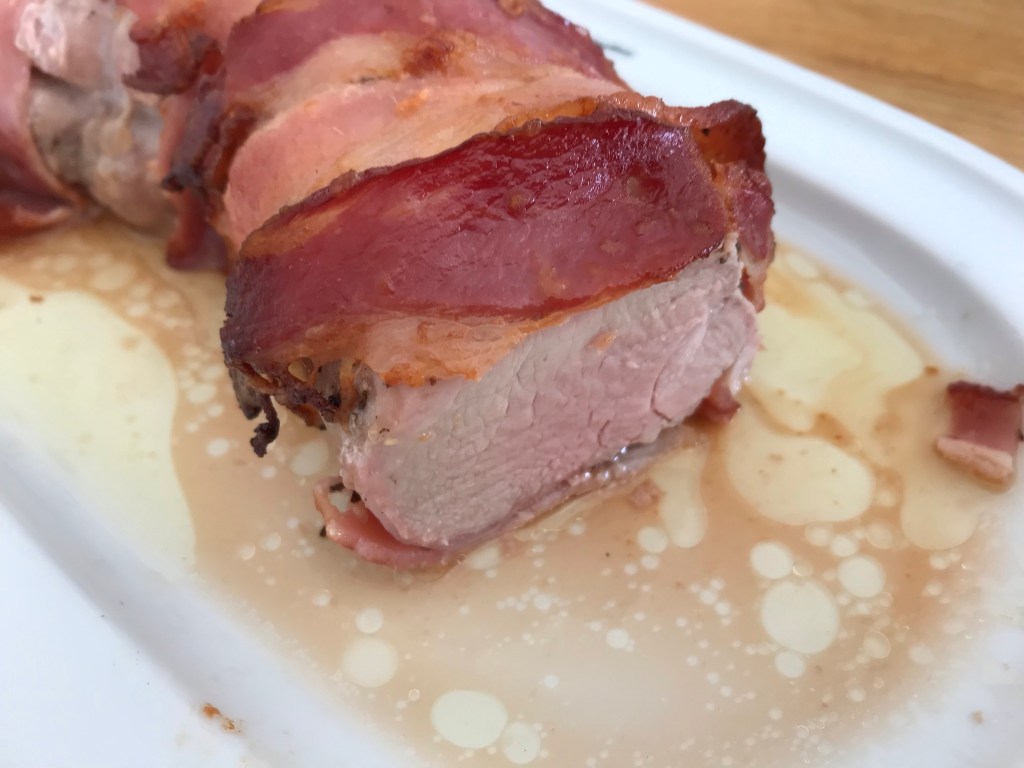 1/Solomillo pequeño, bacon, sal, pimienta, aceite de oliva y palillos de diente.