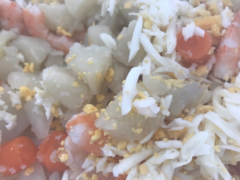 ENSALADILLA RUSA CON LANGOSTINOS O ATÚN HECHA CON LA MONSIEUR CUISINE